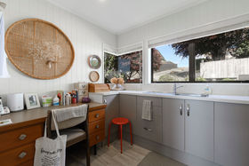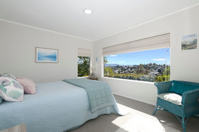 The master bedroom with ensuite, and two bedrooms upstairs enjoy panoramic views. The home has been thoughtfully renovated with a fresh, modern aesthetic throughout, offering comfortable, stylish living.